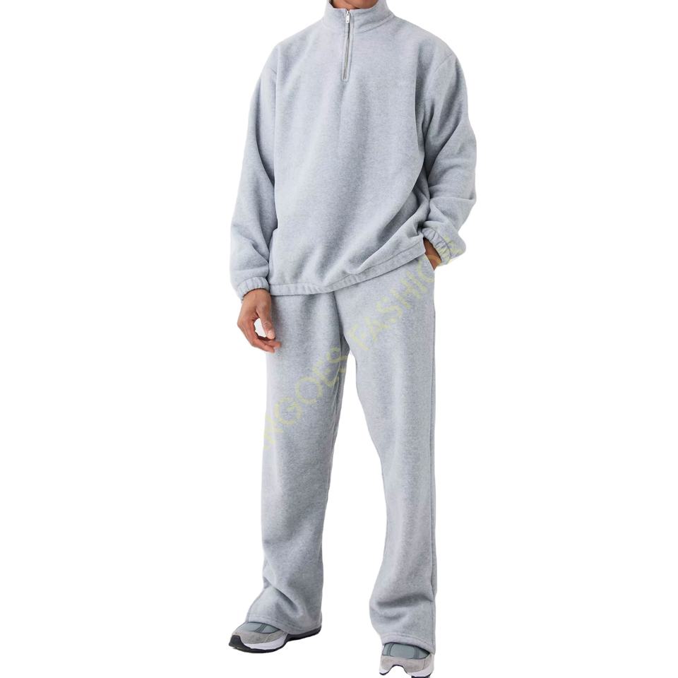 Oversized Quarter Zip Funnel Neck Fleece 100% Cotton Breathable High Quality Tracksuit Joggers Set Customize OEM Logo 2026