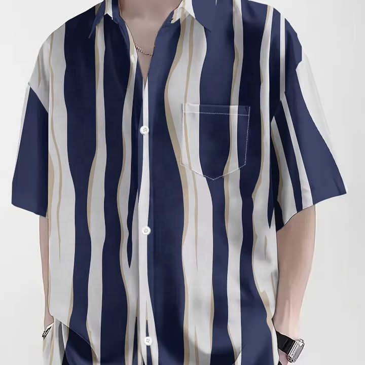 Oversized Striped Short Sleeve Button Casual Stripe Shirt Men Casual Streetwear Top Lightweight Summer Boxy Fit Fashion