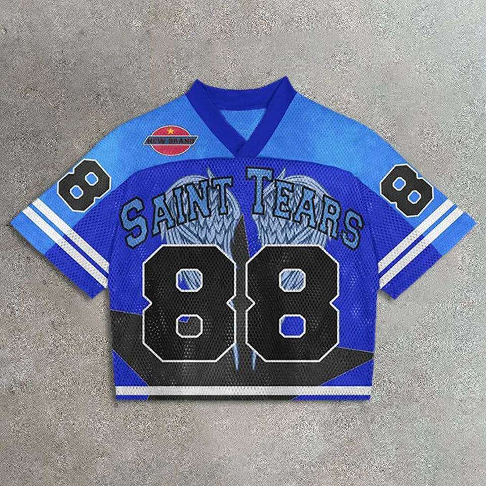 Oversized T Shirts Custom Men's Gothic Streetwear Y2K Oversized Mesh T-shirt Football Jersey Style with Printed Design & V Neck