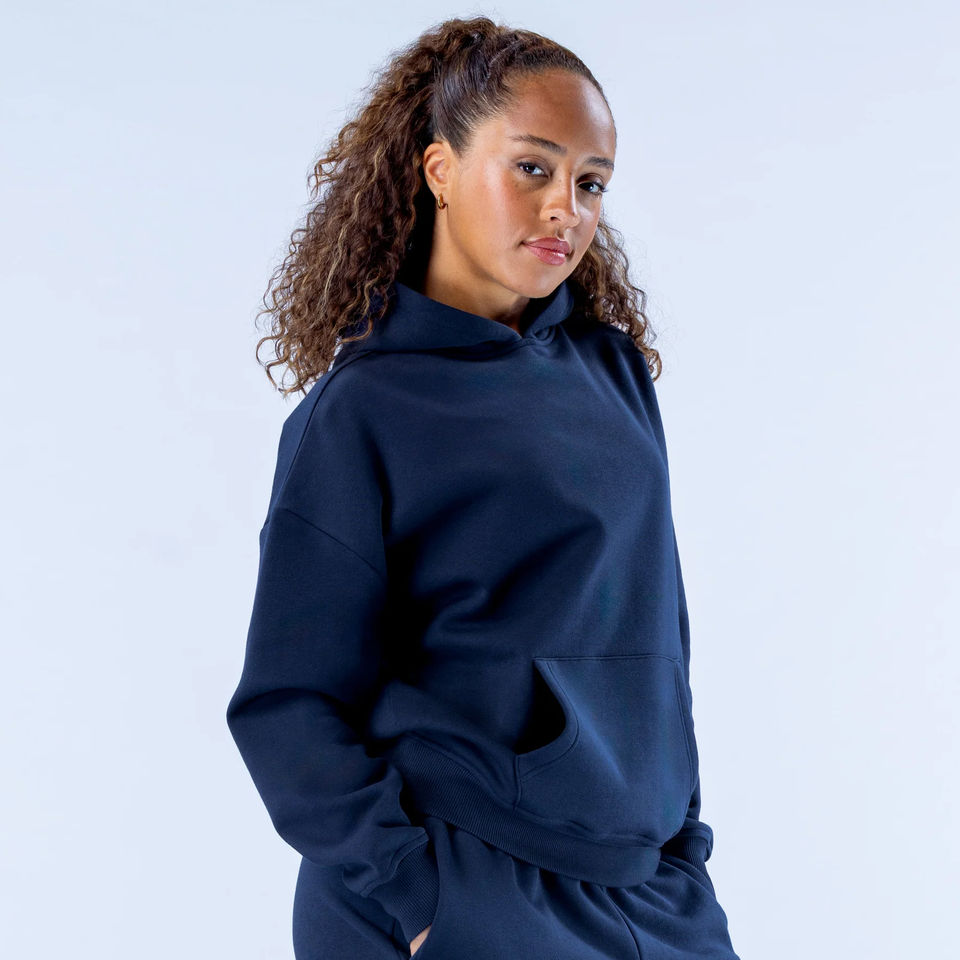 Oversized Winter 3D Embroidery Latest Navy Women's Drop Shoulder Relaxed Fit Revive Hoodie Anti-Wrinkle Breathable 100% Cotton