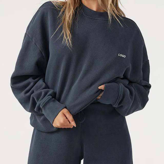 Oversized Women Sweatshirt Crew Neck Hoodie 100% Cotton Fleece Breathable Waterproof Winter with Back Logo 300g Pockets