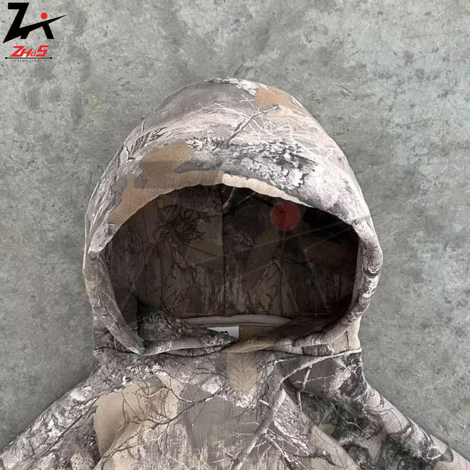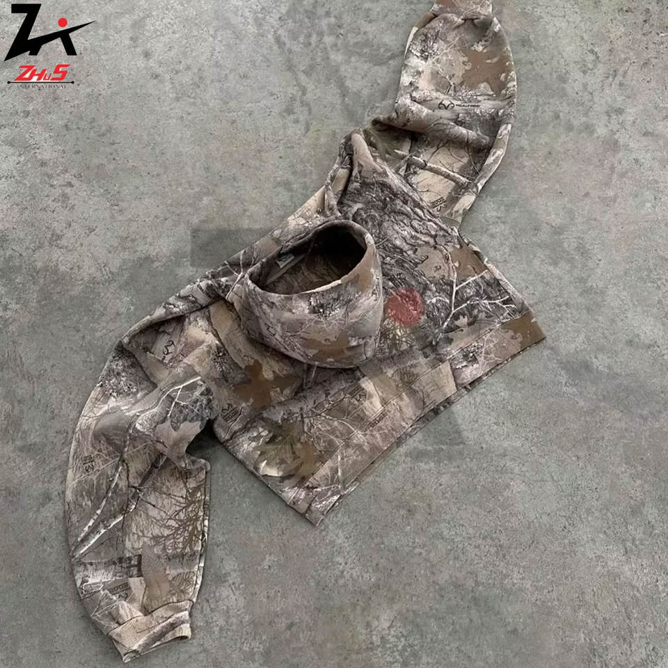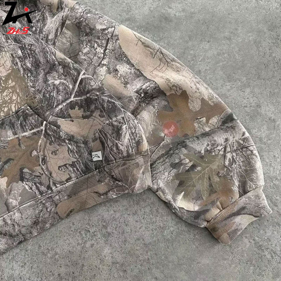 Men's Oversized Y2K Retro Hoodie Streetwear Style 3D Embroidery Printed Camouflage Design Fleece Sweatshirt OEM Camo Hoodies