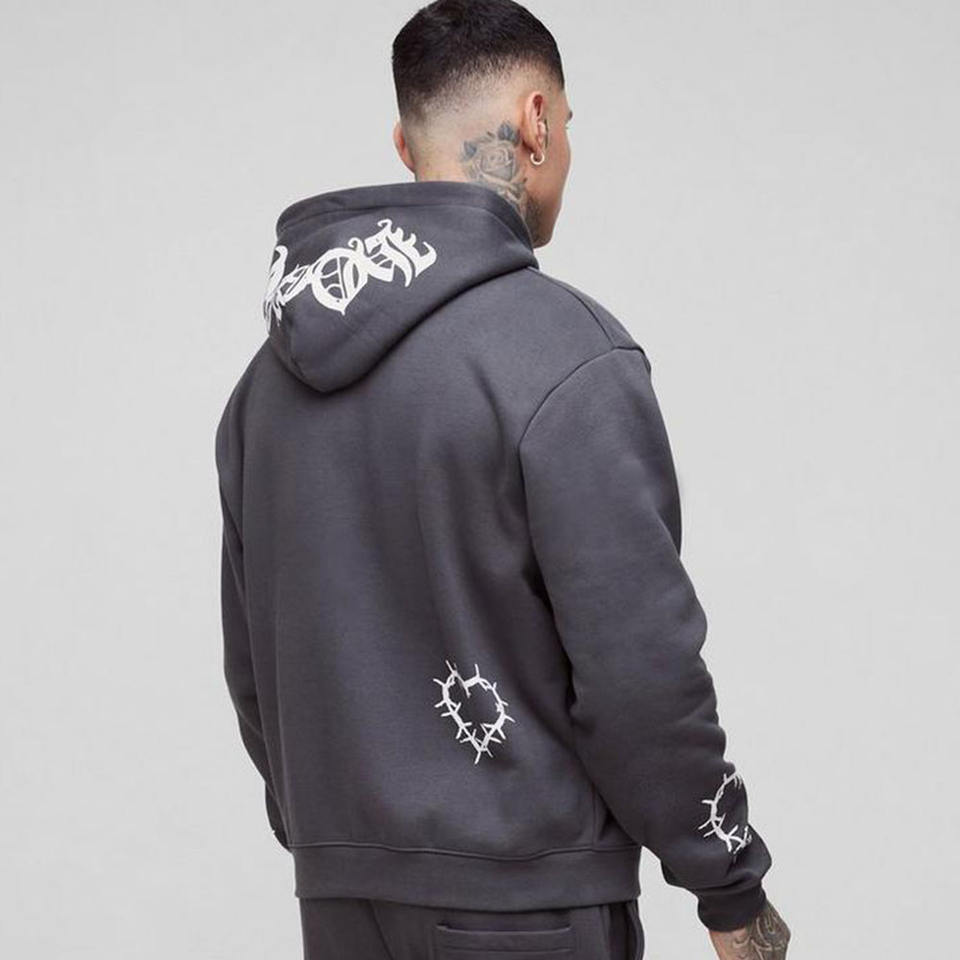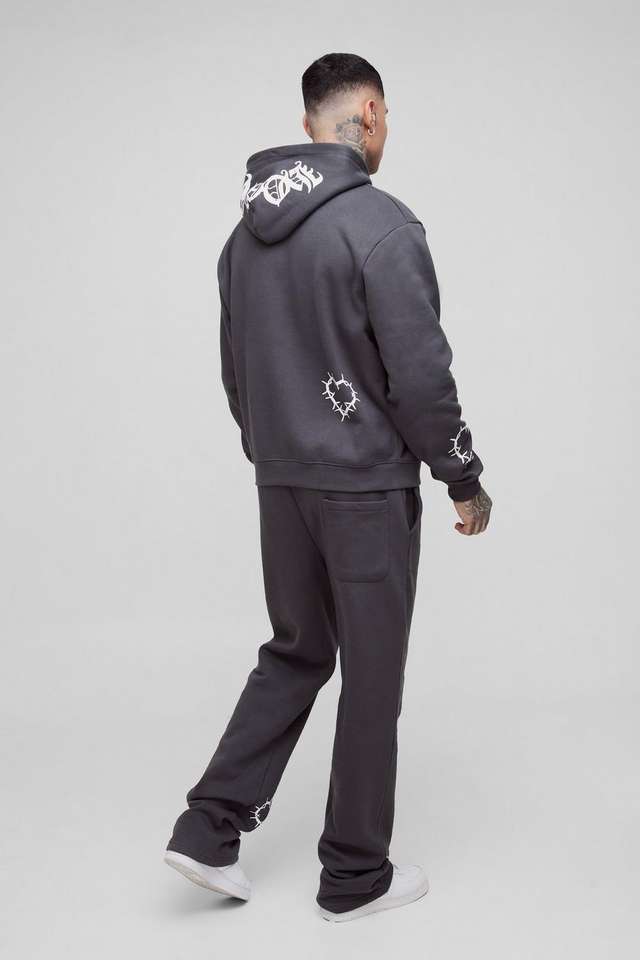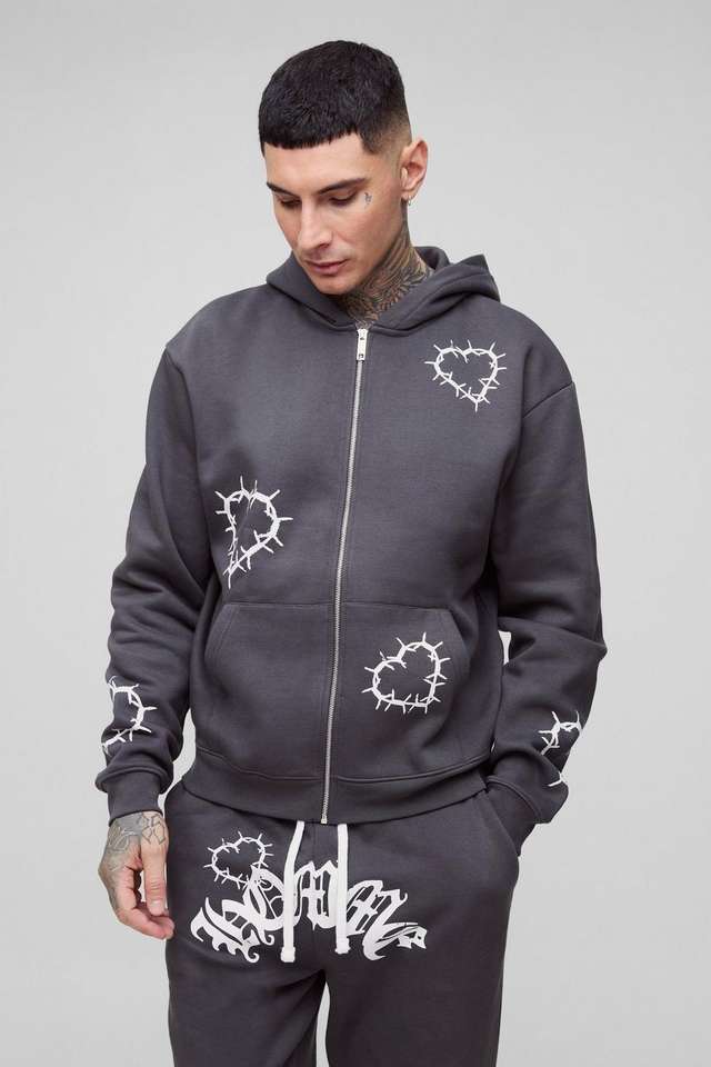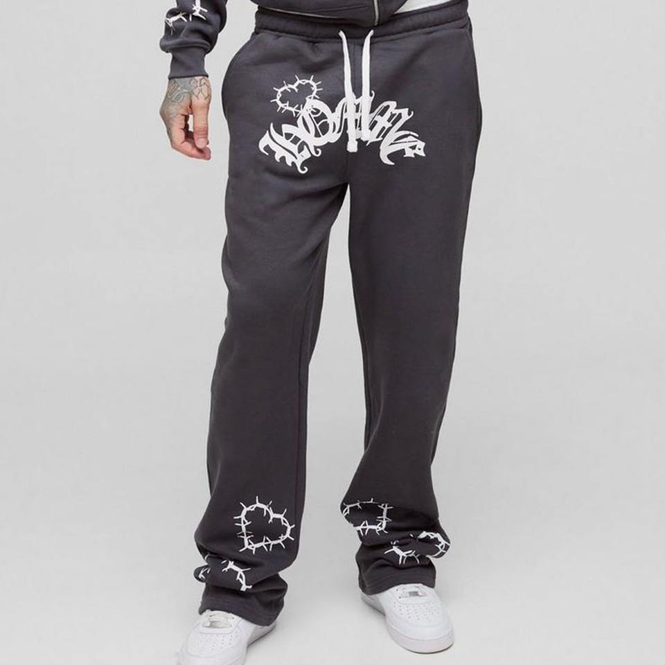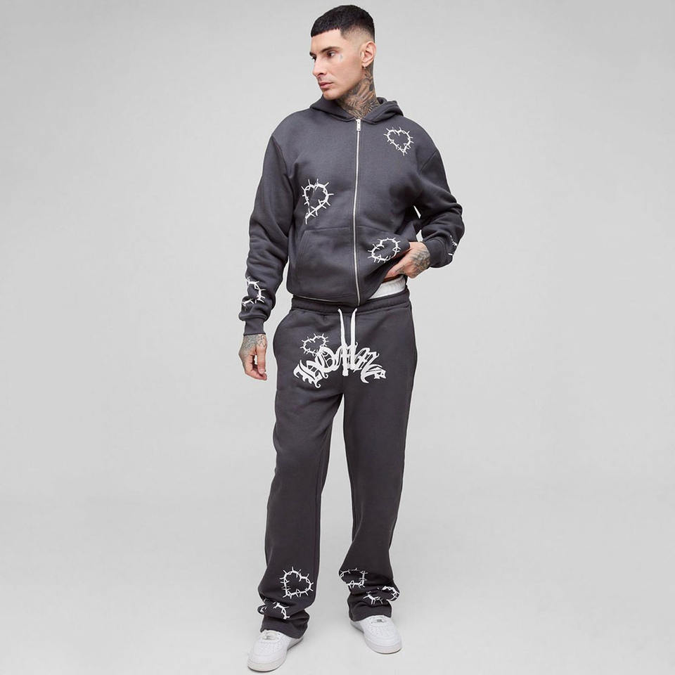 Oversized Zip Hooded Sweatpants Jogger Set High Men's XL Cargo Pant Tracksuit Double Waistband Boxy Fit Heart Print for Winter