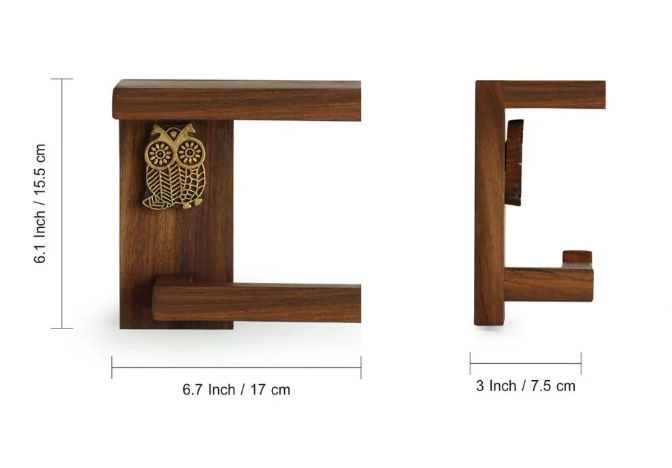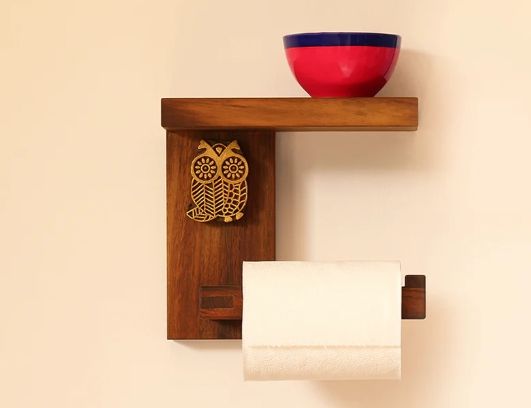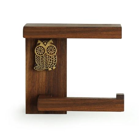 Owl Block Handcrafted Toilet Tissue Roll Dispenser Sheesham Wood Wall-Mounted Toilet Paper Holder for Bathroom
