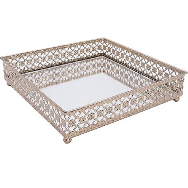 Own Designed Metallic With Glass Tray Unique Gold Finished Kitchen Dining Table Decorative Plate Dessert Food Serving Tray