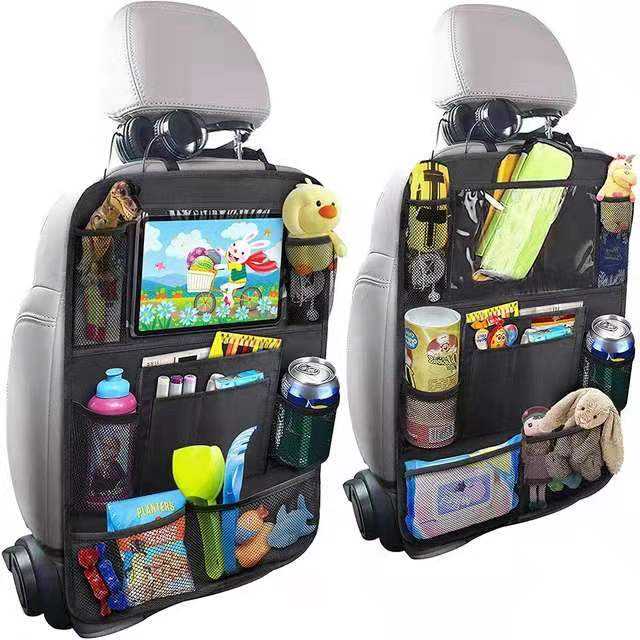 Oxford Fabric Black Car Seat Back Organizer Waterproof Hanging Auto Storage Bag Multi-Pocket Foldable Travel Feature 41x62cm