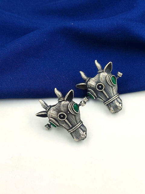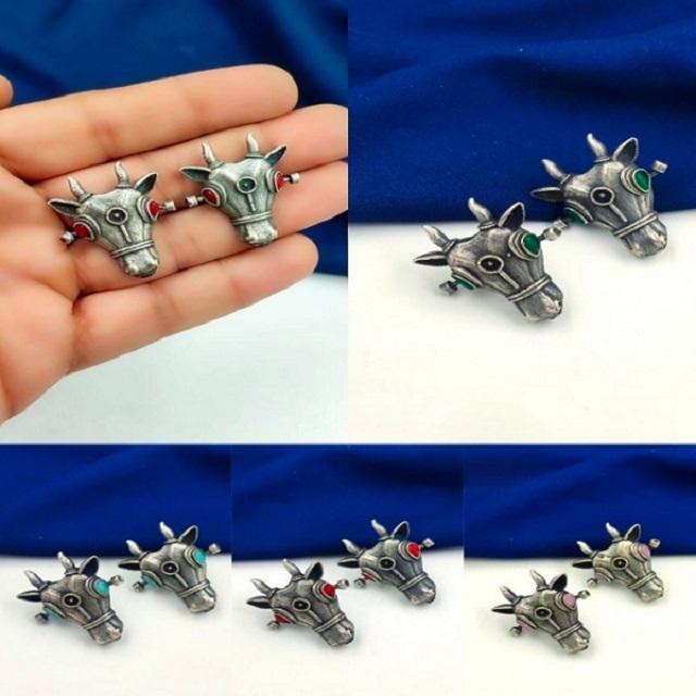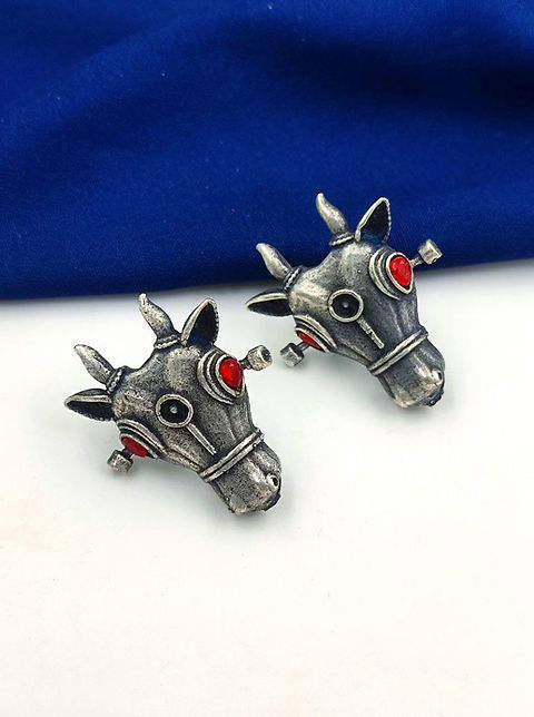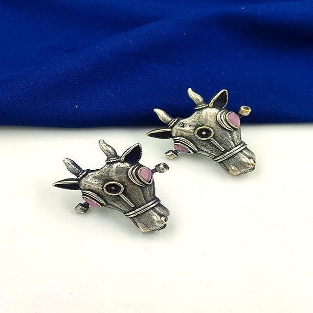 Oxidised Silver Bull Stud Earrings Vintage Inspired Design for Bold Fashion Statements Perfect For Both Formal & Casual Wear