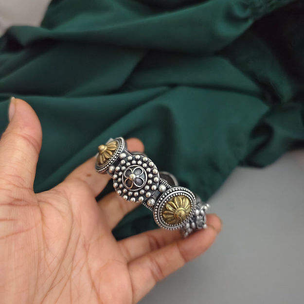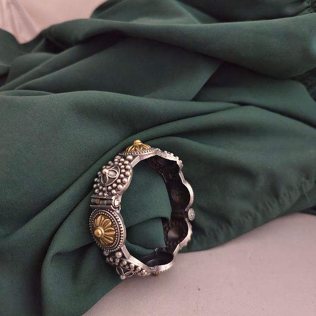 Oxidised Silver Lookalike Two tone Bangle Hot Sale Bohemian Vintage Bracelet Exquisite Geometric Bracelet for Ladies Gift