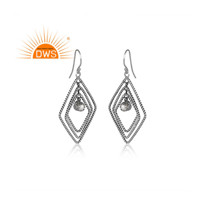 Oxidized 925 Sterling Silver Handmade Women's Necklaces Jewelry Natural White Pearl Gemstone Dangle Earrings Jewelry Supplier