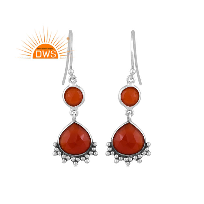 Oxidized 925 Sterling Silver Natural Red Onyx Gemstone Dangle Earring Jewelry For Women Gift For Her