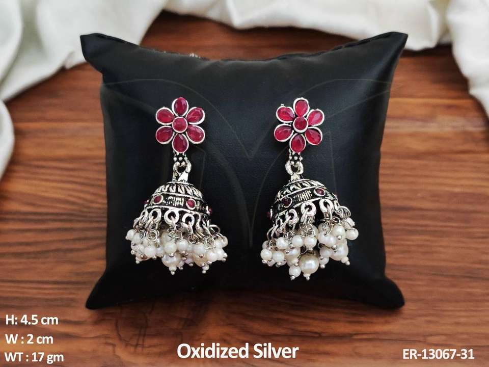 Oxidized Jhumka Design Oxidized Silver Polish Fancy Style Clustered Pearl Party Wear Jewelry Accessories Jhumka Earrings Women