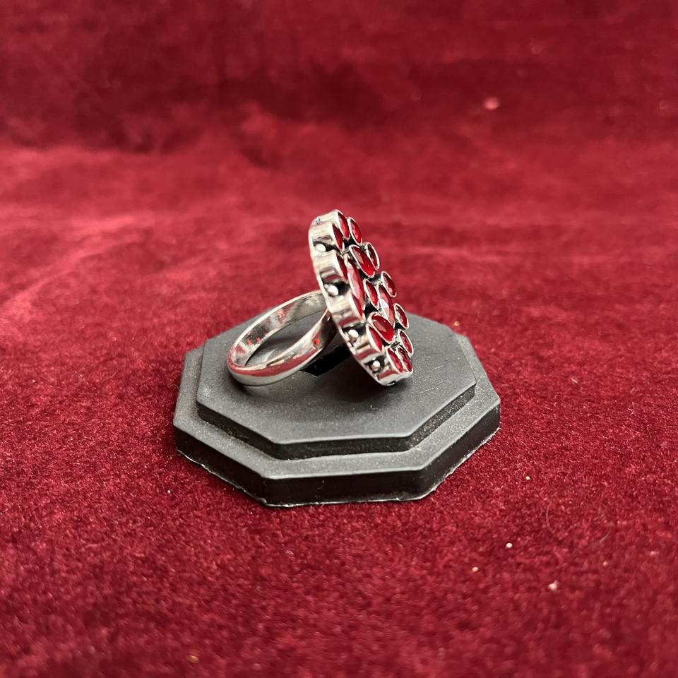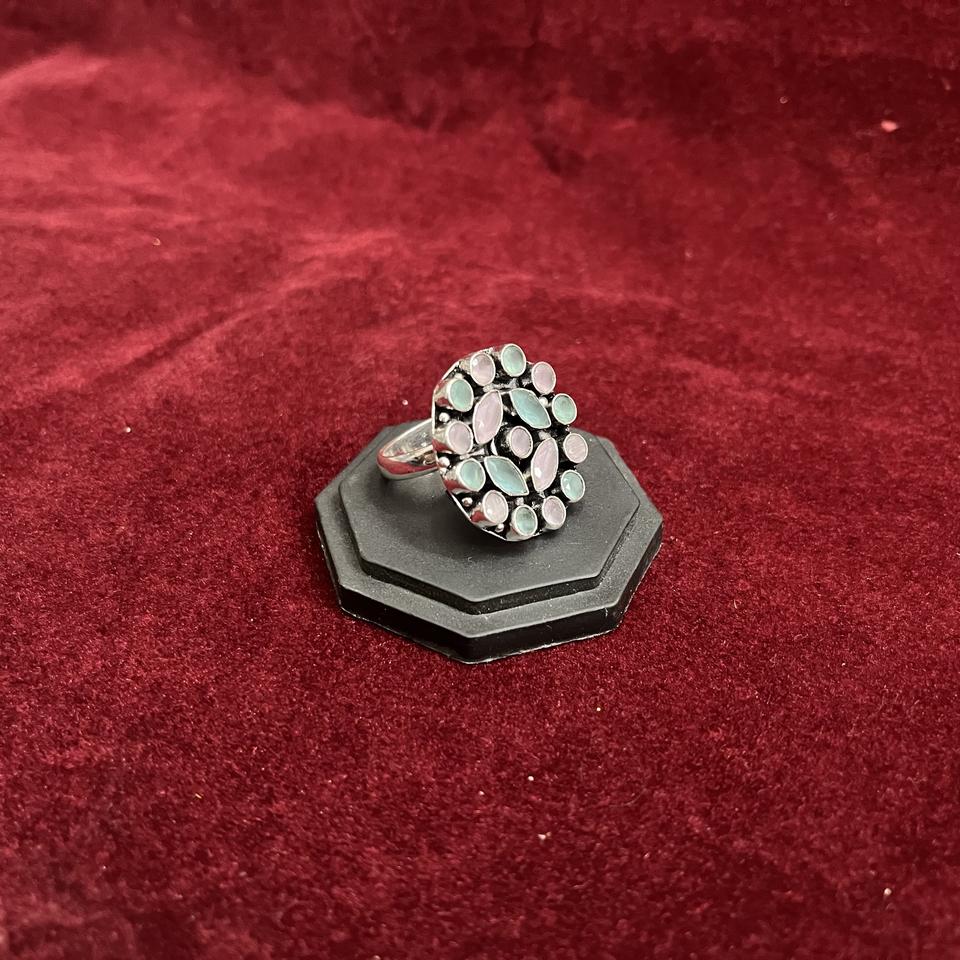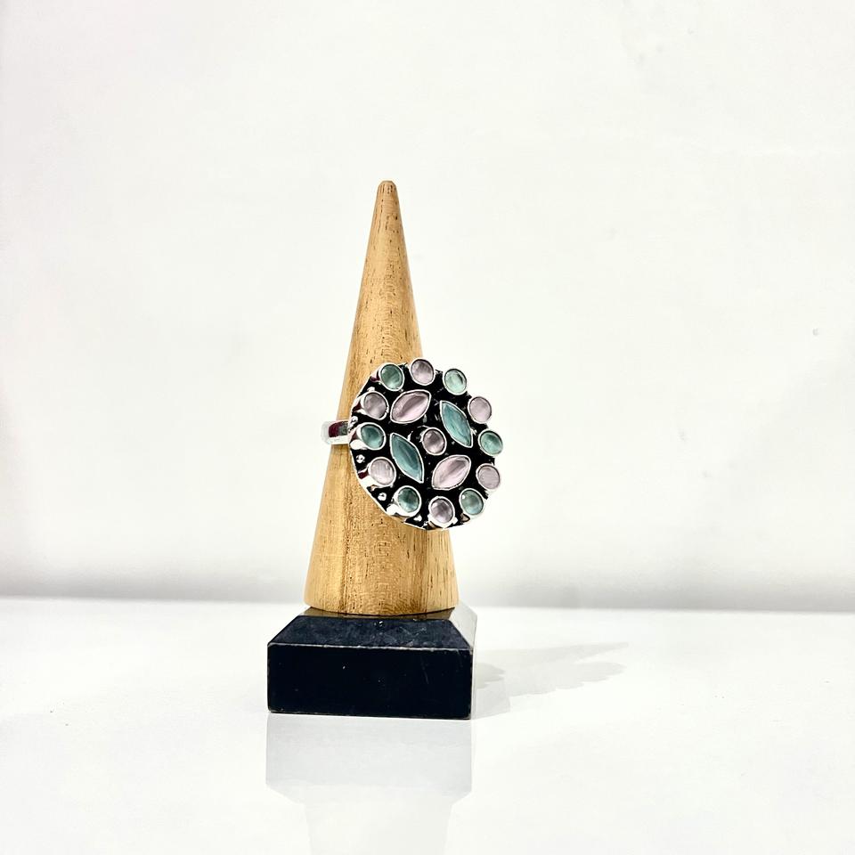 Oxidized Silver Brass Floral Cluster Cute Gemstone Ring for Women Fashion Jewelry