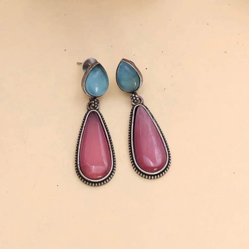 Oxidized Silver Dangle Earrings with Pear Cut Gemstone and Bezel Setting Women's Classic Fashion Gift