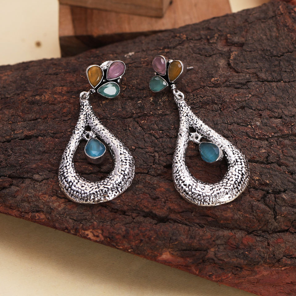 Oxidized Silver Earrings Women Fashion Gift for her