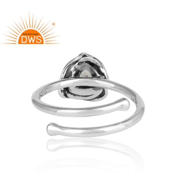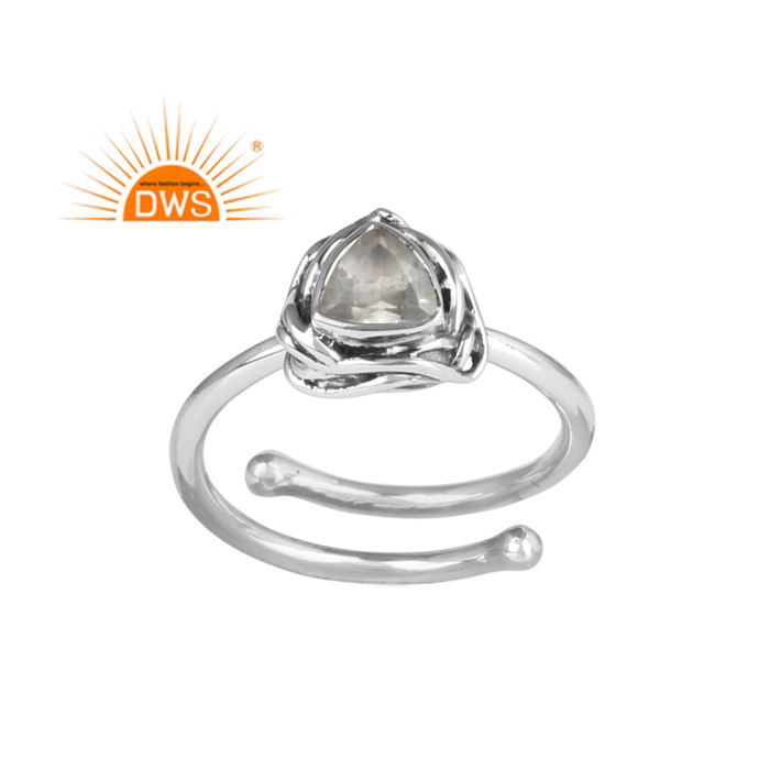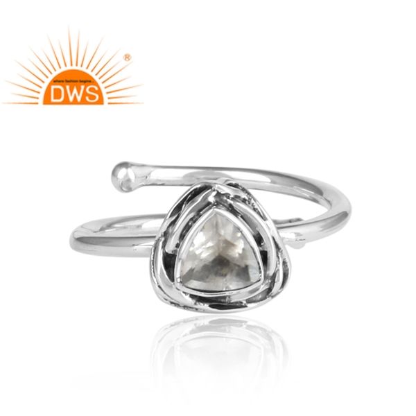 Oxidized Sterling Silver Natural Crystal Quartz Gemstone Adjustable Ring for Women Jewelry Manufacturer