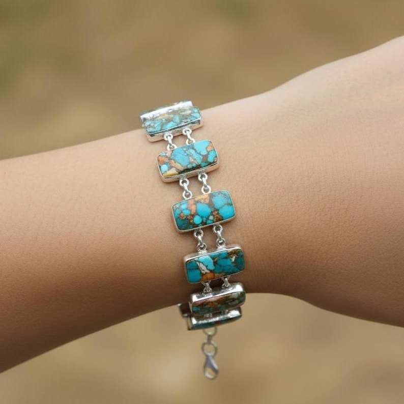 Keyword:Oyster Turquoise Glowing Bracelet Crafted With Stones