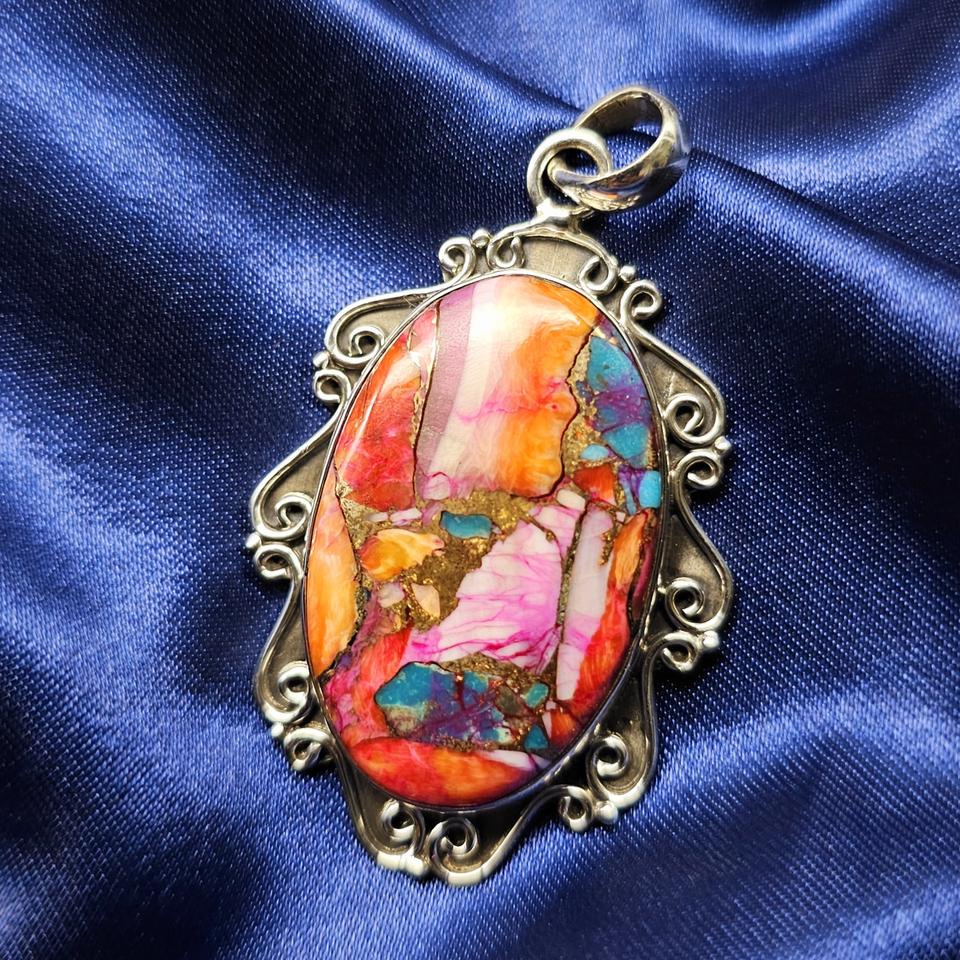 Oyster Copper Turquoise Gemstone 925 Sterling Silver Pendant Handmade Heart-Shape Pendant Diamond Opal Hip-hop Religious Style