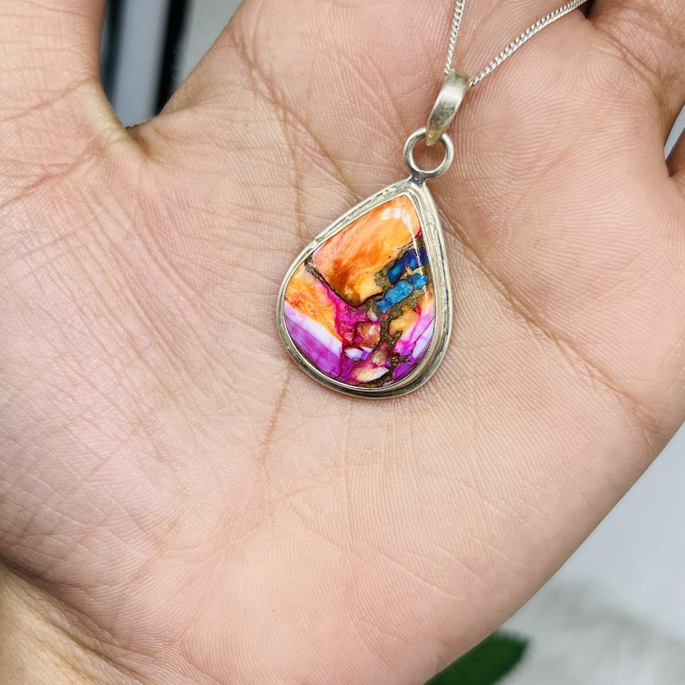 Oyster Copper Turquoise Gemstone Handmade Pendant 925 Sterling Silver Pendant Oyster Copper Turquoise Big Stone Jewelry