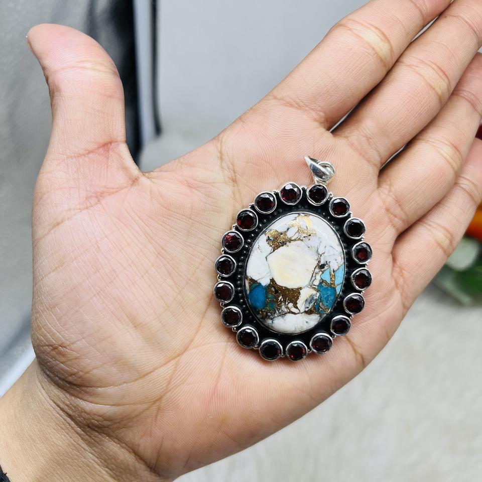 Oyster Copper Turquoise Pendant 925 Sterling Silver Turquoise Gemstone Pendant Silver Jewelry Designer Handmade Pendant Jewelry
