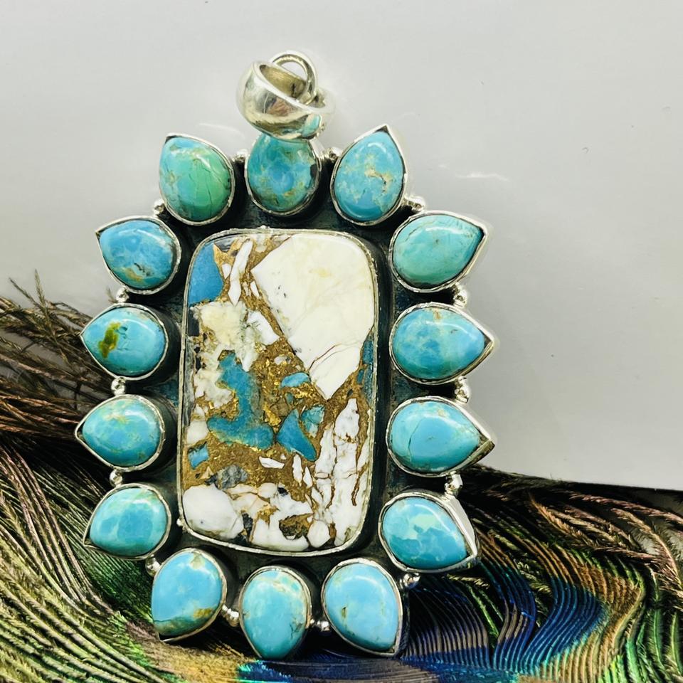 Oyster Copper Turquoise Pendant Silver Pendant Boho Pendant 925 Sterling Silver Pendant Natural Turquoise Women's Pendant