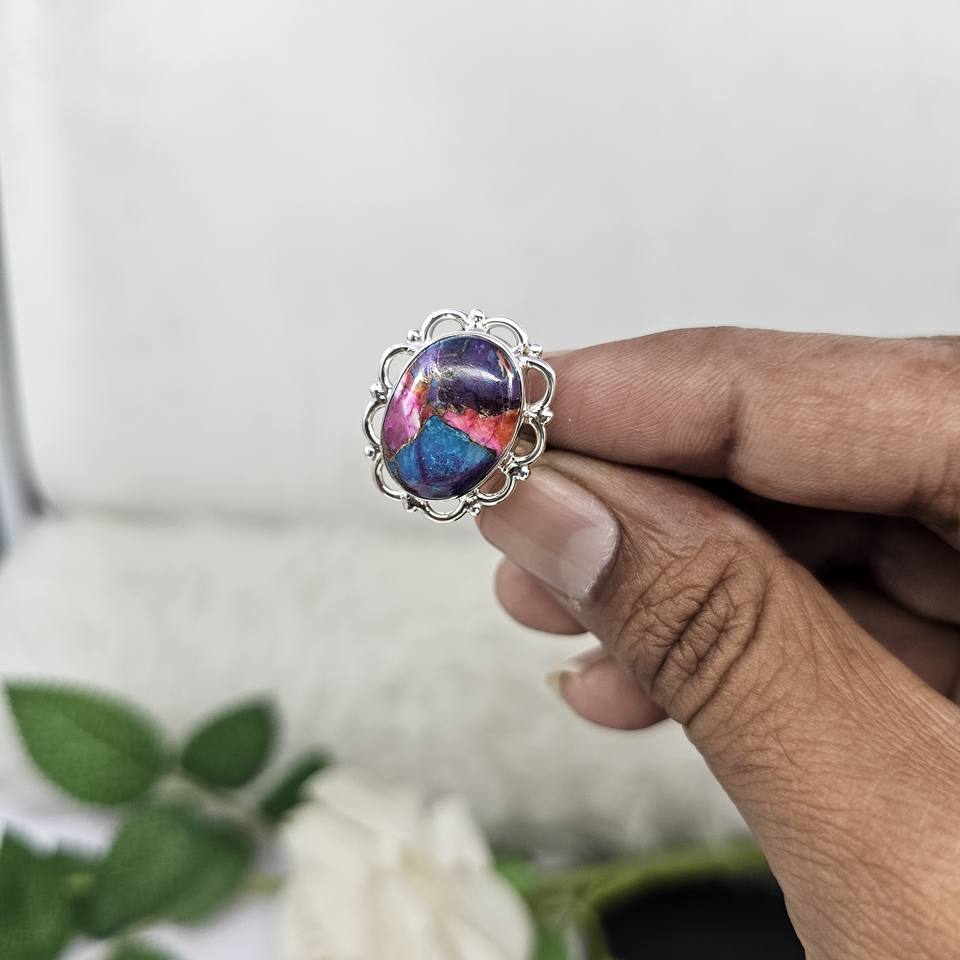 Oyster Copper Turquoise Ring for Women Boho Statement Ring with Oval Stone Sterling Silver Featuring Moissanite and Diamond