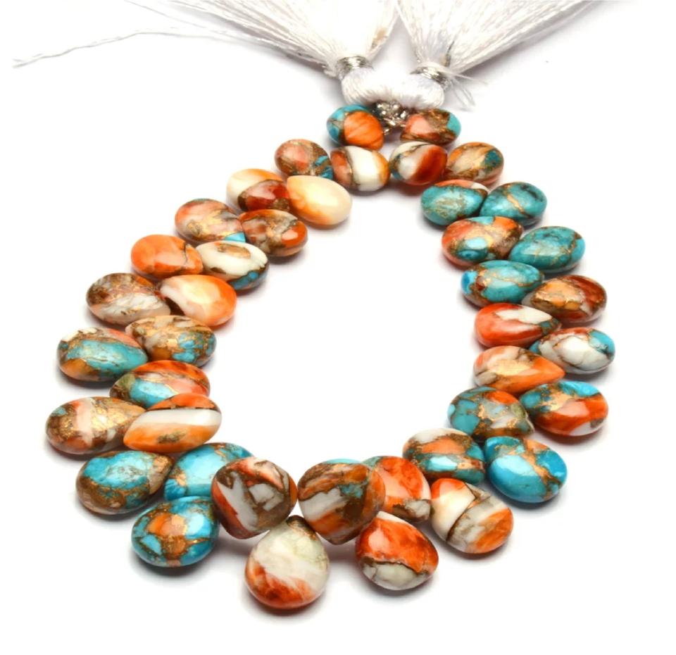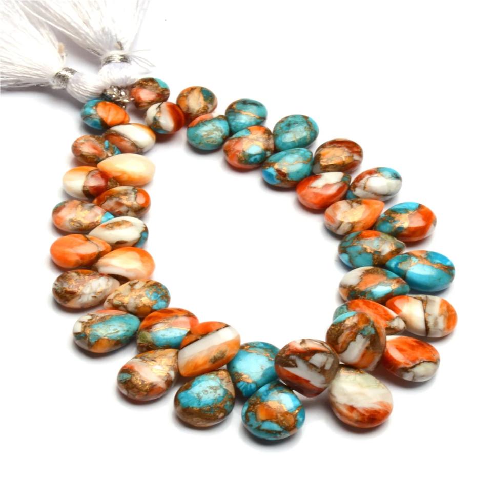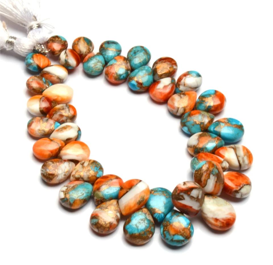 Oyster Turquoise 8x6 12x9 mm Size Multi Colored Smooth Pear Shape Beads 7" Strand Loose Gemstone Third Party Certified Coszcatl