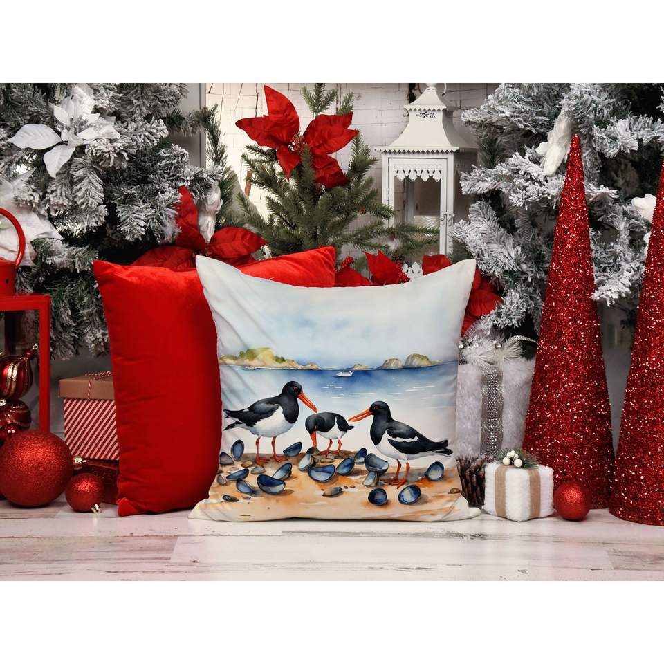 Oystercatchers 14x14 Indoor/Outdoor Decorative Throw Pillow Machine Washable for Couch Bed & Patio Featuring Feeding Scene