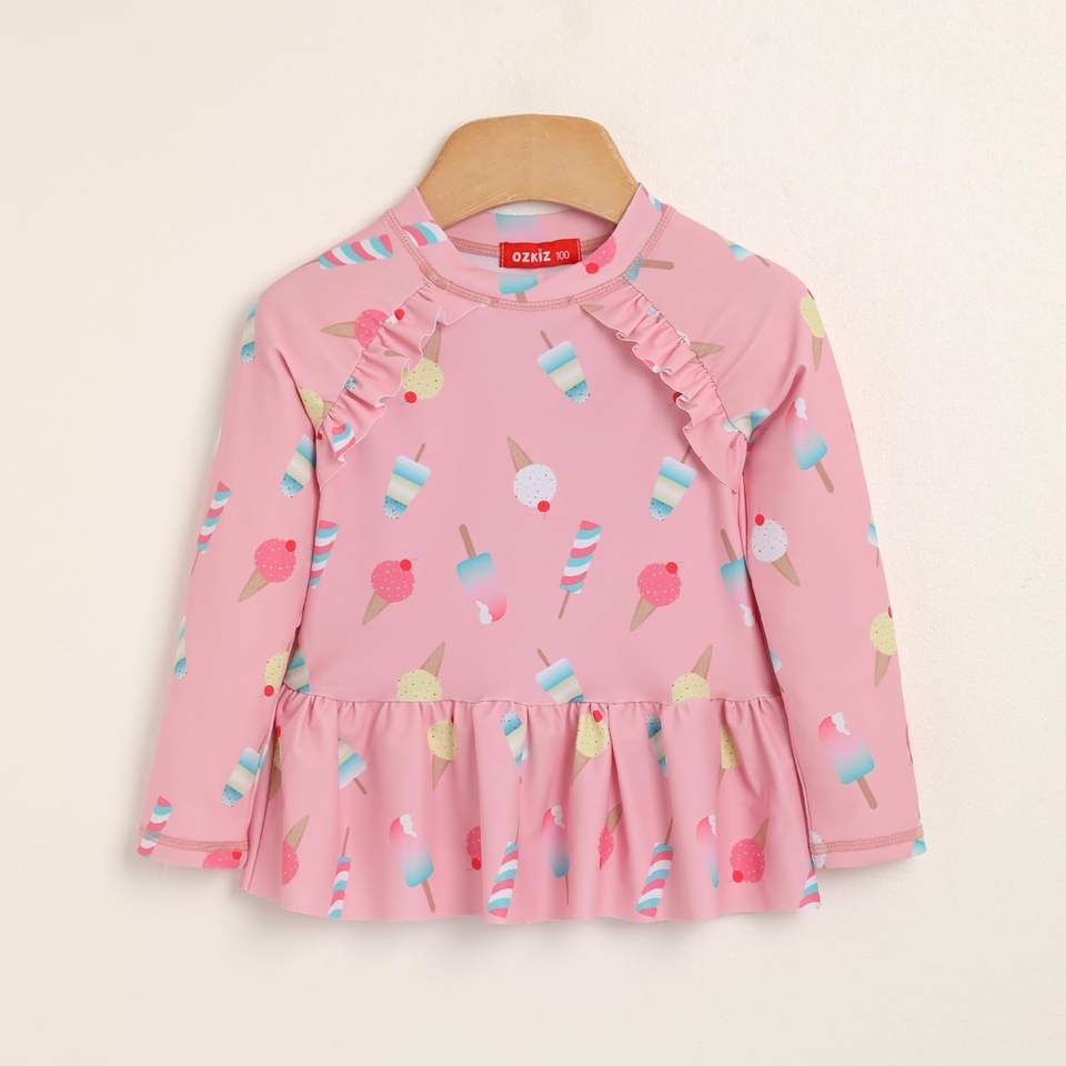 Ozkiz Girls' Summer Style Swimwear Set Breathable Fabric with Ruffle Design Soft Lining & Stretchy Waistband Sweet Ice Print