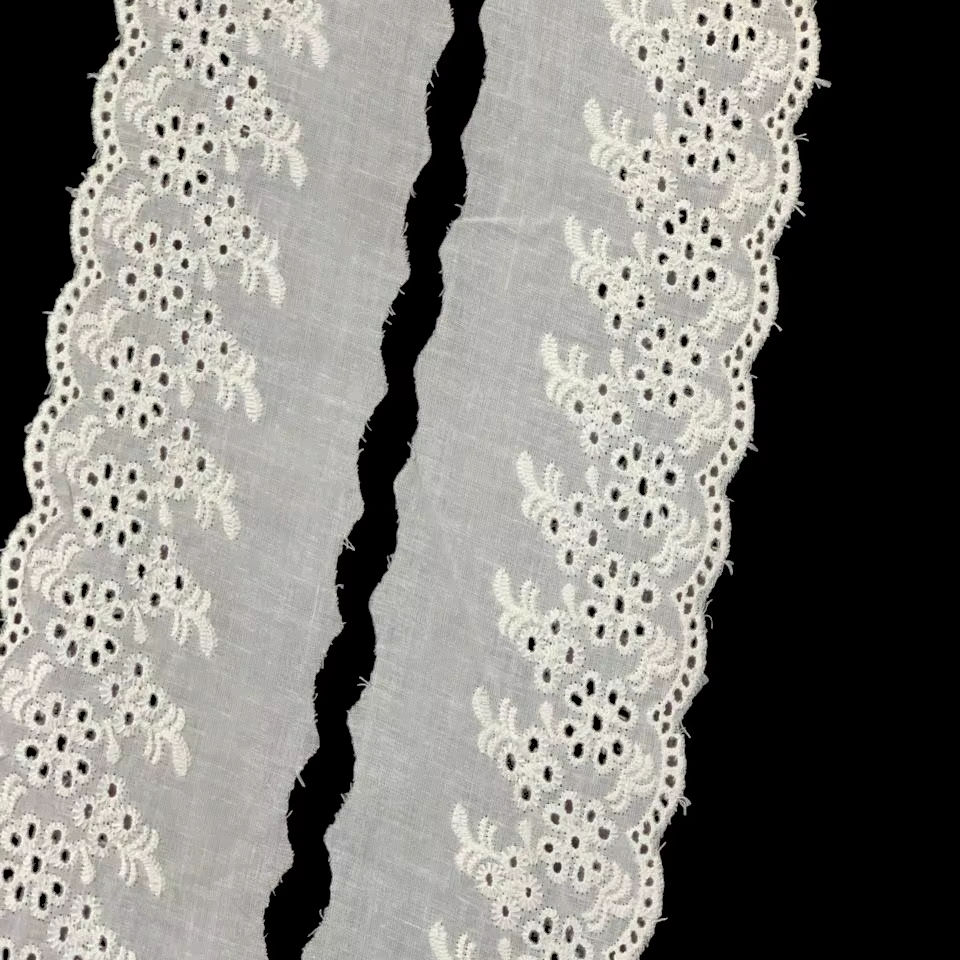 P C JAIN TEXTILE PRIVATE LIMITED Breathable Quick-Dry 100% Cotton Lace Fabric Eyelet Lace Trim Scalloped