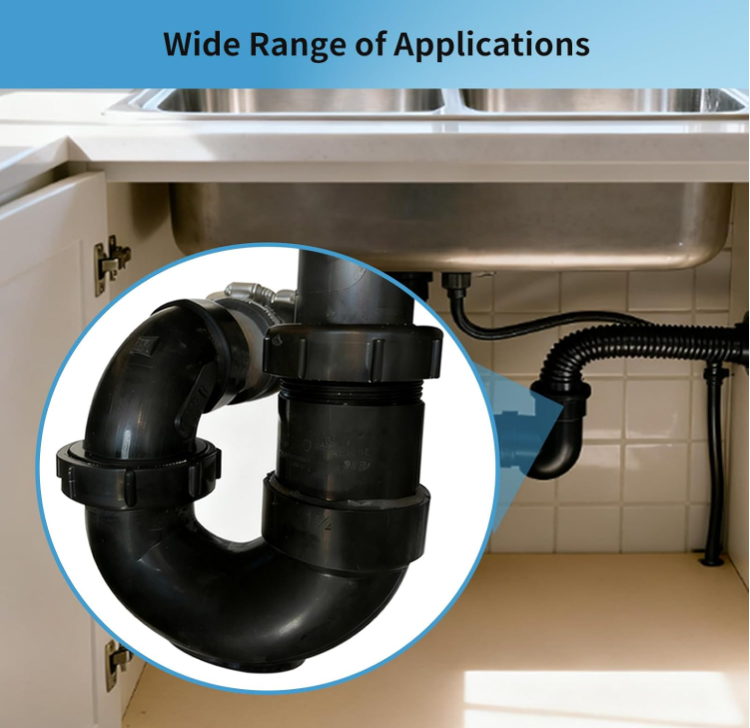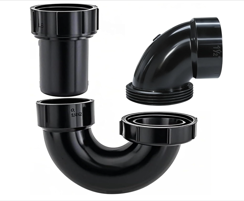 P Trap with Threaded Adapter Ring 1-1/2" Leak & Odor Proof Drain Kits for Bathroom/Kitchen/RV Sink Drain ABS P Trap