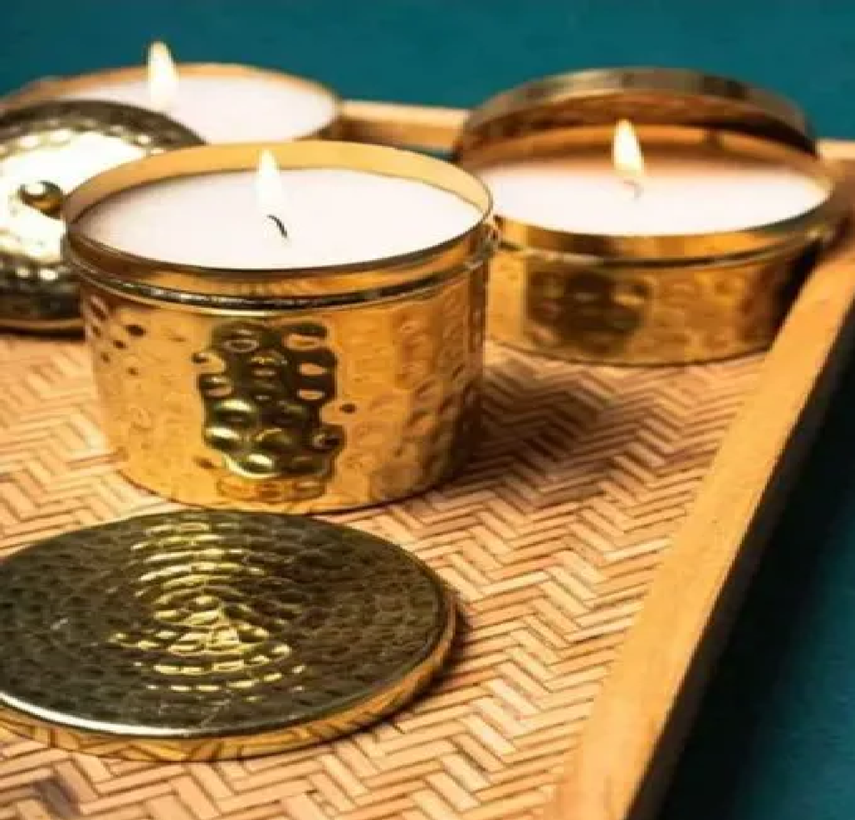 P-tal Handcrafted Vintage Brass Grooved Metal Candle Jar Direct Indian Wholesaler Copper Metal Candle Jar Holder Glass Lanterns