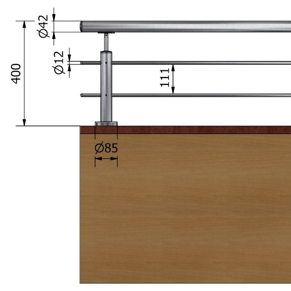 P110128-5 Round Upright Stainless Steel Rails AISI 304 Satin Low Height 40mm 2 Cross-Members for Floor Fixing Ø 42.4