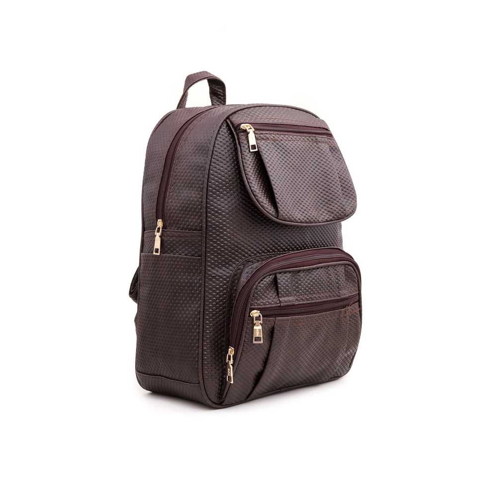 P47386 Formal Coffee Backpack with Anti-Theft & Waterproof Features Oxford and PU Materials Zipper & String Closure
