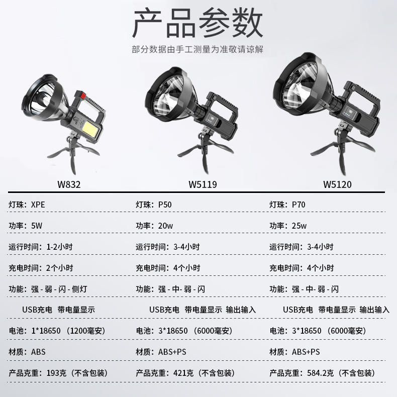 P50 Multi-functional Searchlight Rechargeable 4500mAh LED White Light Camping Hiking Night Riding Patrol Outdoor Waterproof