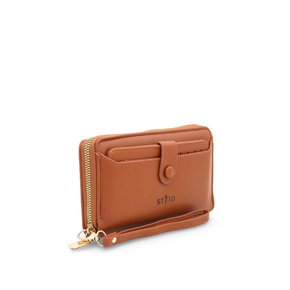 Vertical Brown Genuine Leather Wallet, Leather Wallet with Snap Fasteners