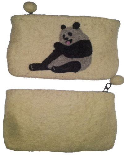 PANDA DESIGNS Lady-Style Handmade Felt Envelope Coin Purse with Wool Cotton Lining Zipper Closure Landscape Pattern Handbags