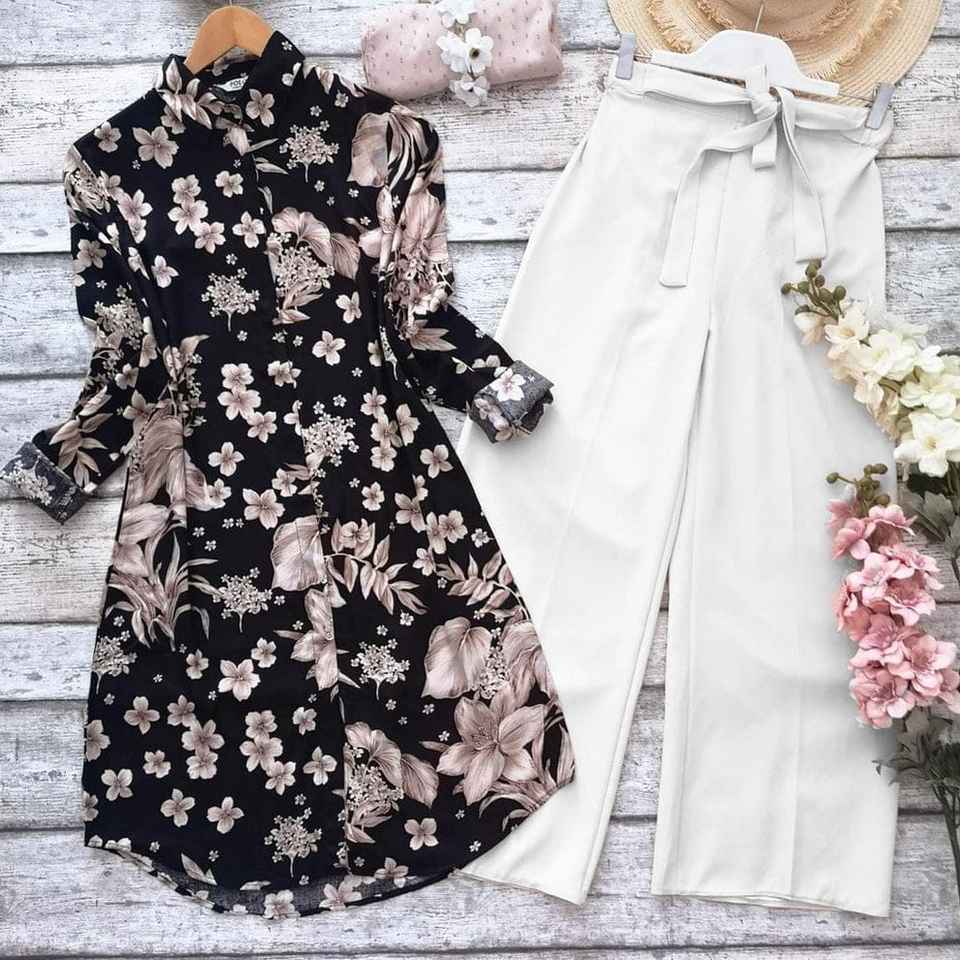Digital Print Party Jumpsuit Comfortable Work Kurti with Black Palazzo