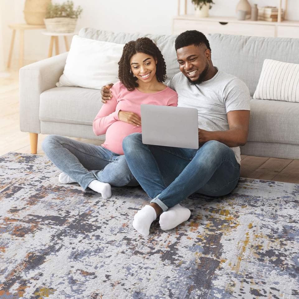 PAYAS Collection 2X8 Abstract Runner Rug in Ivory/Blue Elegant and Stylish