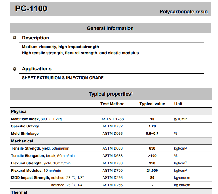 PC Korea Lotte Chemical PC-1100 Anti-UV Easy Release Ultra-high Fluidity High Temperature Resistance PC Granules Resin