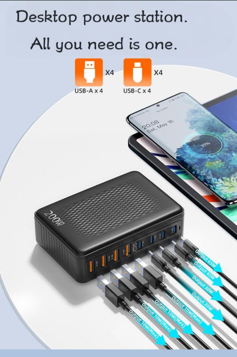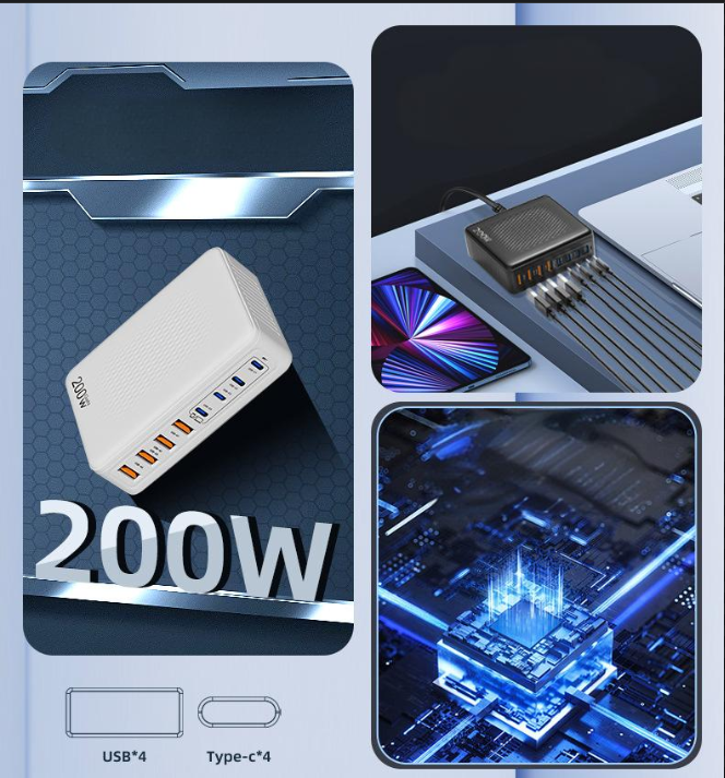 PD 200W Q24 Quad Port Mobile Type-C Fast Wall Chargers Adapter for Iphone Cargador Rapida 200W Para Celular
