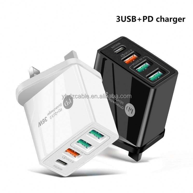 PD+3USB QC3.0 Multi Port Dual Fast Charging Phone Charger 36W Smart Adapter Charging Head Type-C Interface