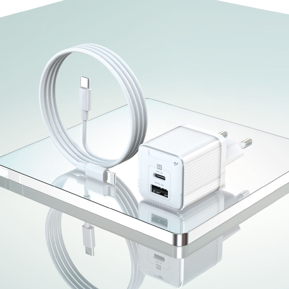 PD20W GAN 4-in-1 A+C Cable Charger White IP TC-225IP for EU US JP UK Sockets 20V Output for Phones Earphones Industrial Use
