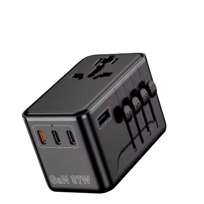 PD87W Indian Specifications GAN Fast Charging 3-Port Type-C USB Wall Charger International Universal Travel Adapter All One