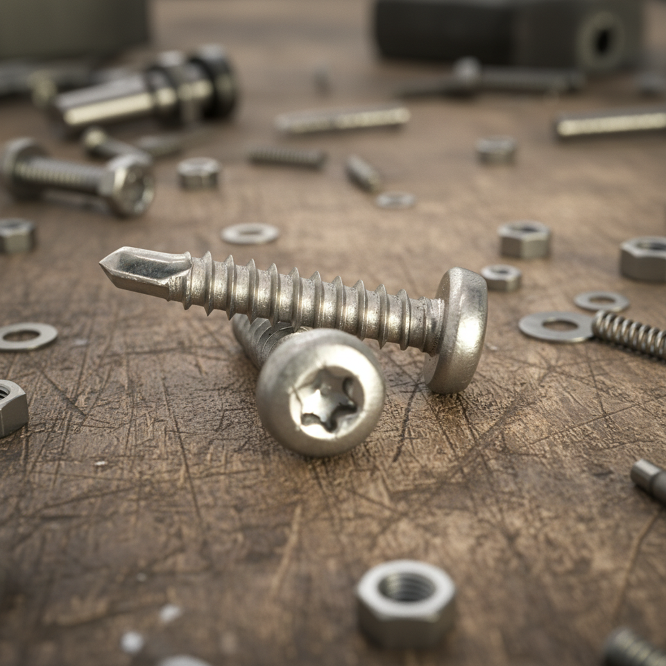 Thread Design:Deep coarse thread, sharp and uniform, optimized for metal fastening
