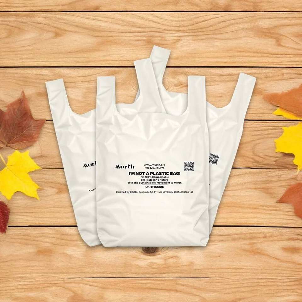PE W Cut Biodegradable Compostable Shopping Bags with Flexo Printing Heat Seal Custom Order Accepted From UKHI Brand Haryana