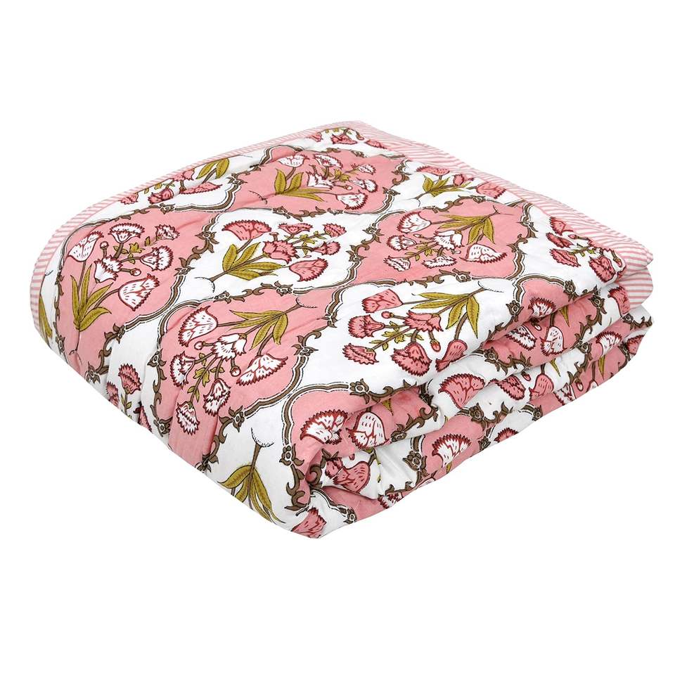 PEACH FLOWER Design Cotton Single Size Quilt Hand Block Print for Light Winters Best High Quality Collection Wholesale Prices