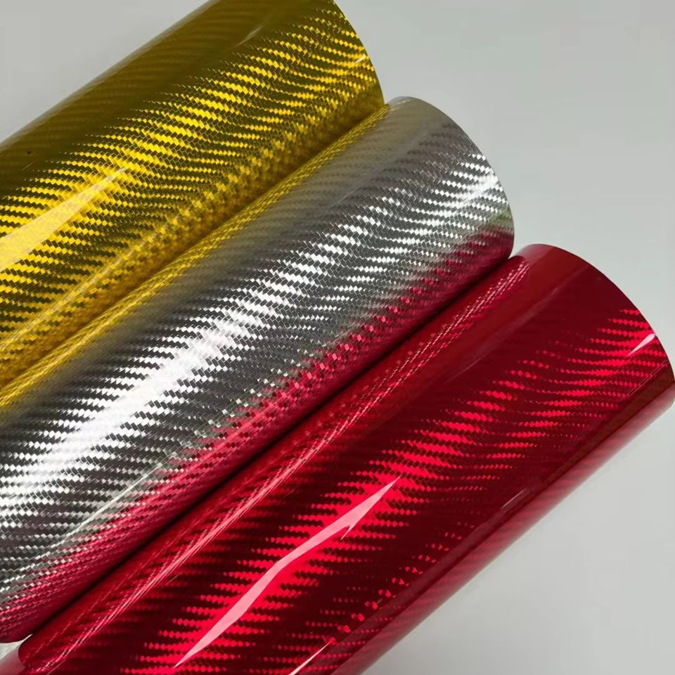 PET Carbon Fiber Car Body Vinyl Wrap Accessories Glossy Sticker 5D Multi Color Option Auto Foil Cover Motorcycle Decoration Film