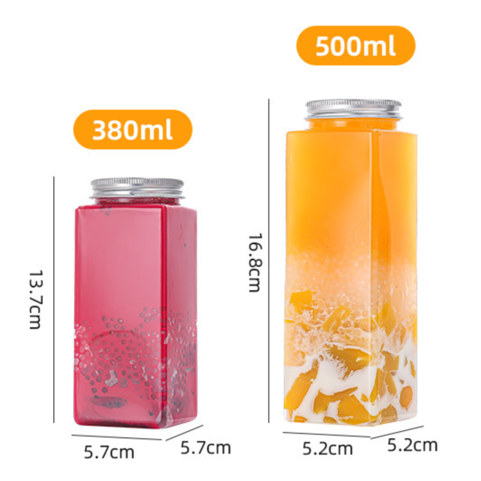 PET Square & Rectangular Plastic Beverage Bottle with Multiple Sizes with Aluminum Cap with Straw Hole Vietnam Factory