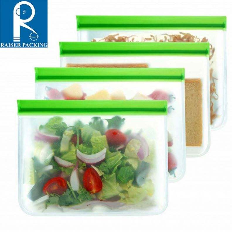PEVA Containers Bags Silicone Leakproof Containers Reusable Stand up Zip Shut Bags Food Storage