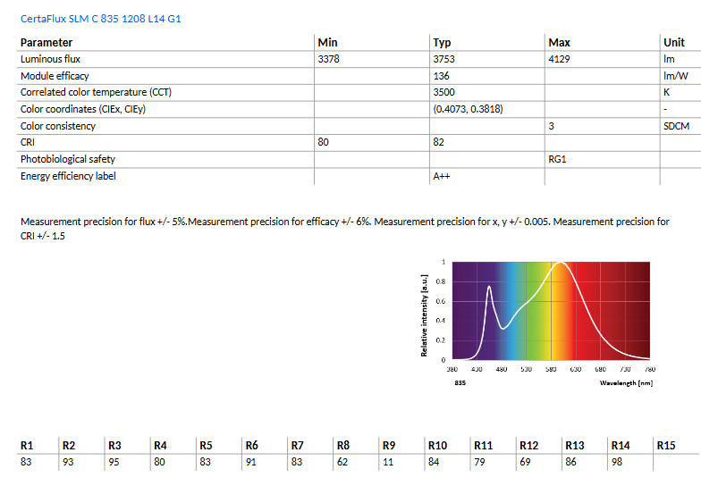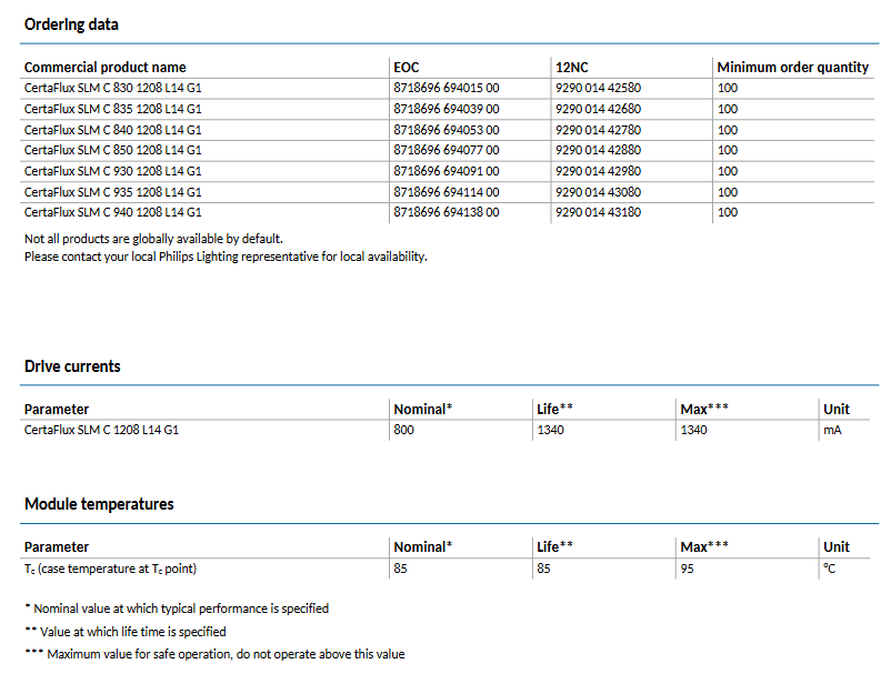 PHILIPSs CertaFlux SLM C 1208 L14 G1 600lm to 4000lm CRI80/90 2700k-5000k Dimmable 3-Year Warranty Led Cob Chip